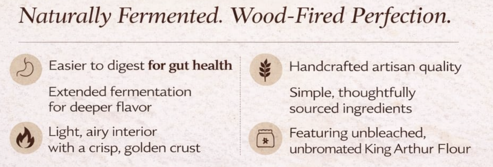 Wood-fired. Patiently fermented. Worth the wait.